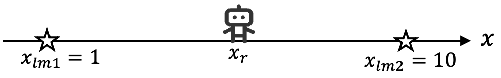 where \(z_i\) is the absolute distance from robot to landmark i, and \(i=1,2\).