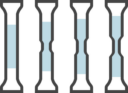 Instead of the force ( stress), we can also prescribe the length change ( strain) of the test bar with a tensile tester. If the bar is extended, we can then register the stress-strain curve below.