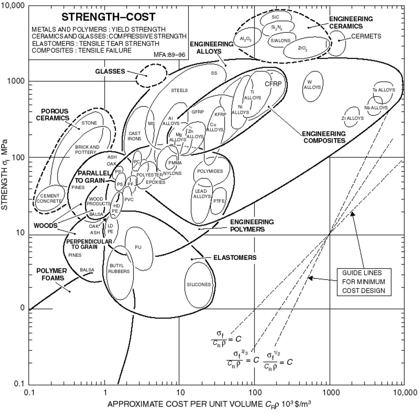 Fig. 2.23 Ashby-diagram, strength versus material cost.#